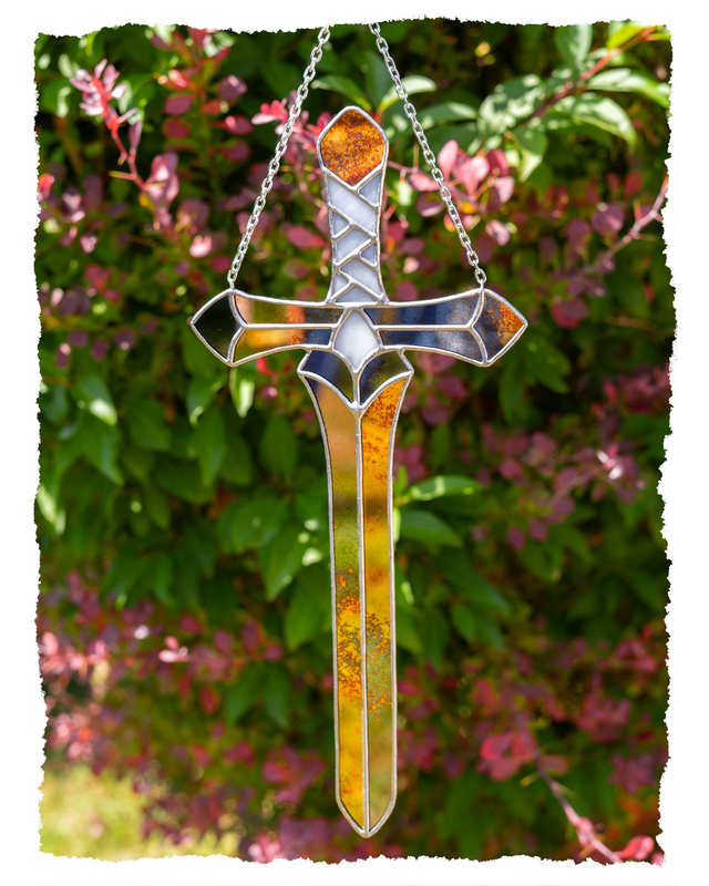 Épée à suspendre fabriqué à la main en vitrail Tiffany.