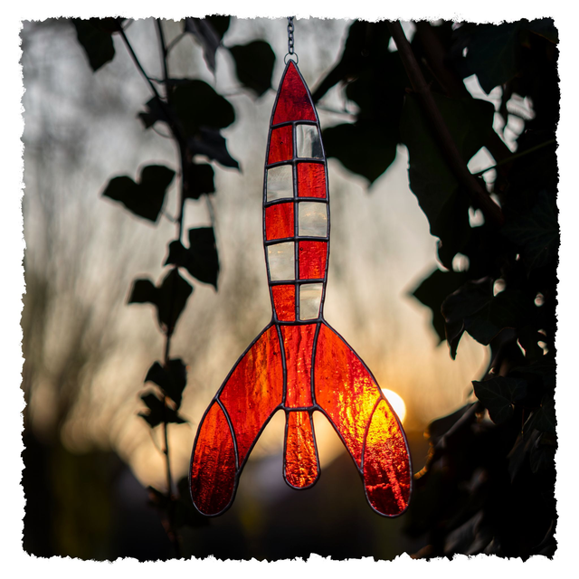 Fusée rouge à suspendre de la célèbre bande dessinée.